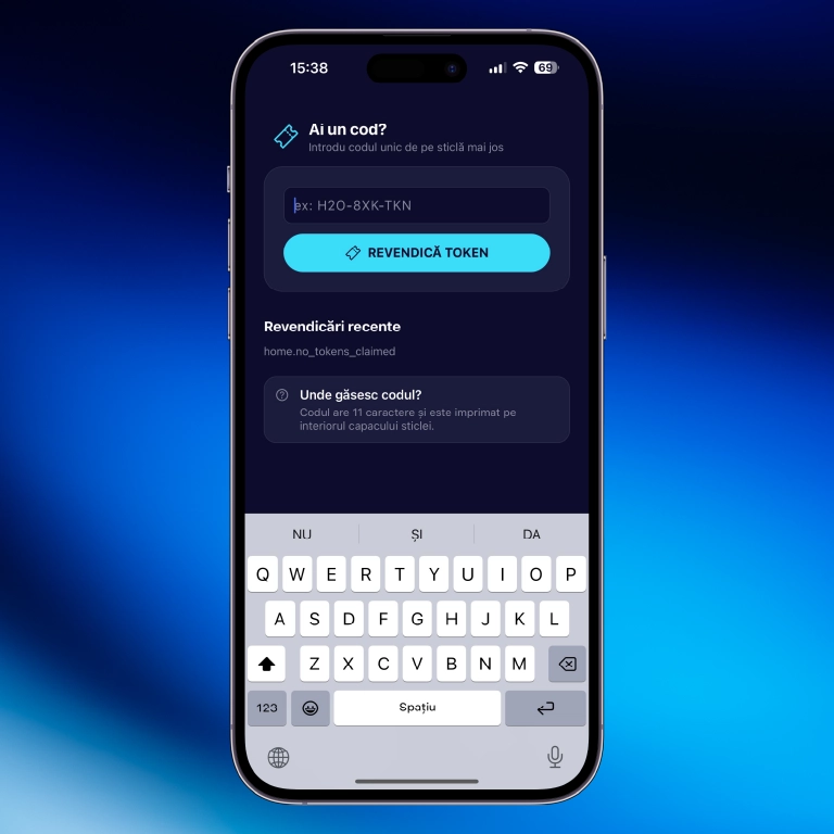 Fiecare sticlă River are un cod de 11 caractere, tipărit pe interiorul capacului. Introdu-l în aplicație și primești instant puncte digitale